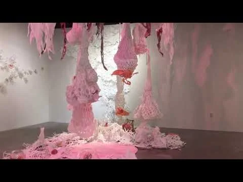 Materials: Vinyl, thread, acrylic paint, plaster, wire, resin